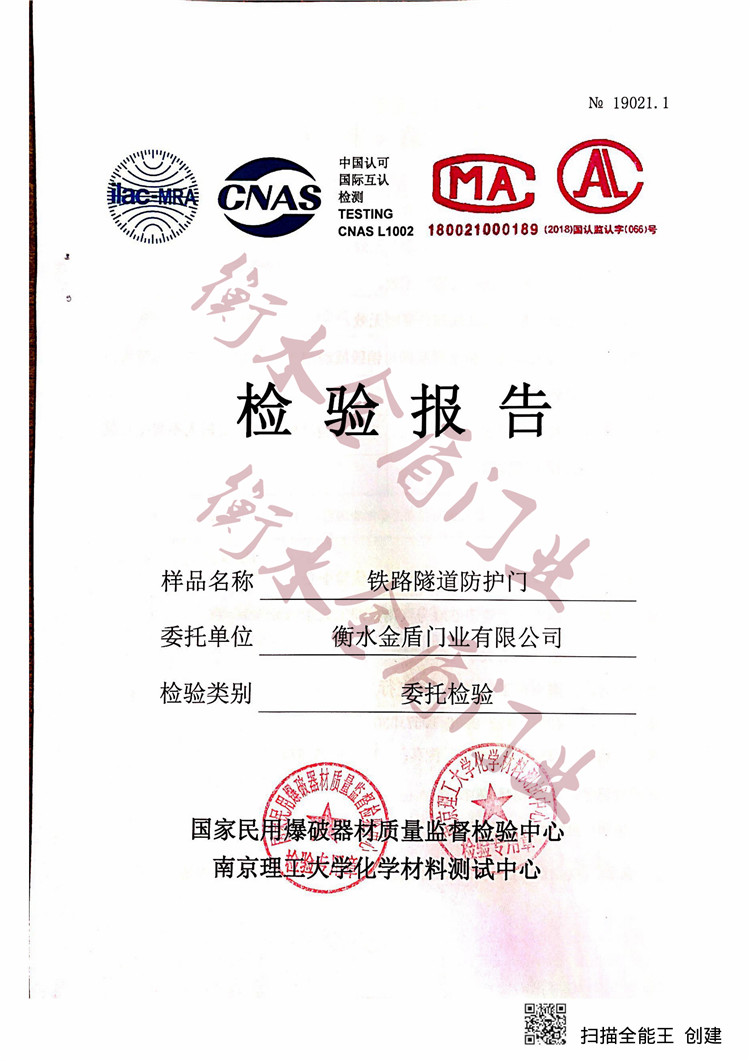 铁路隧道防护门检验报告
