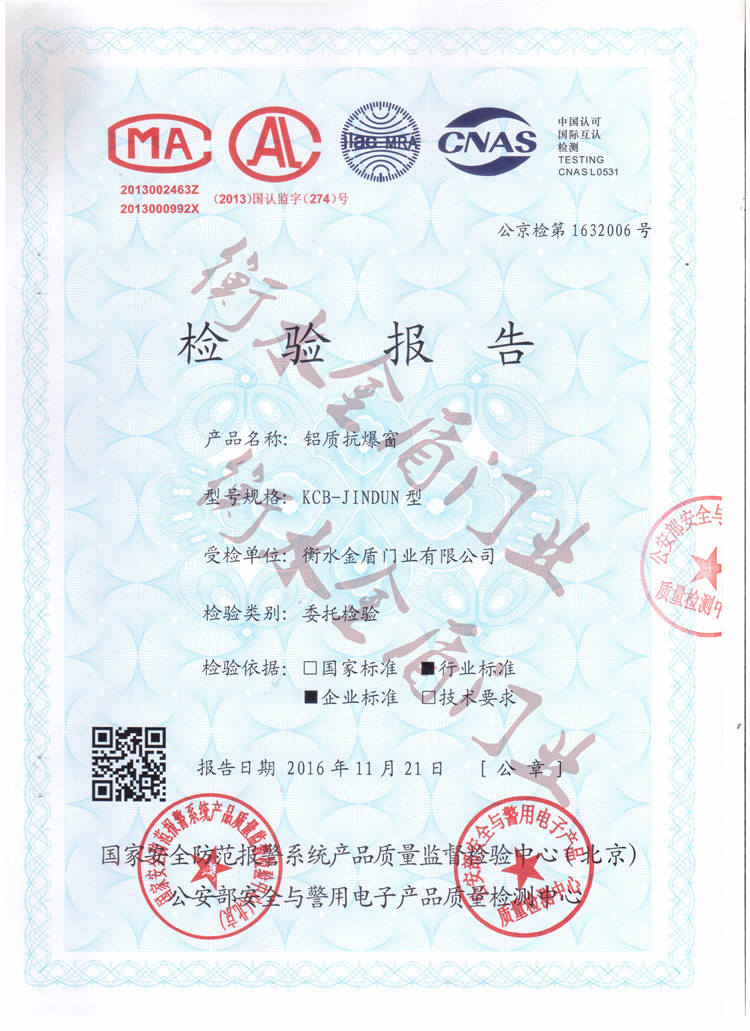 东安铝质泄爆窗-泄爆螺栓检验报告