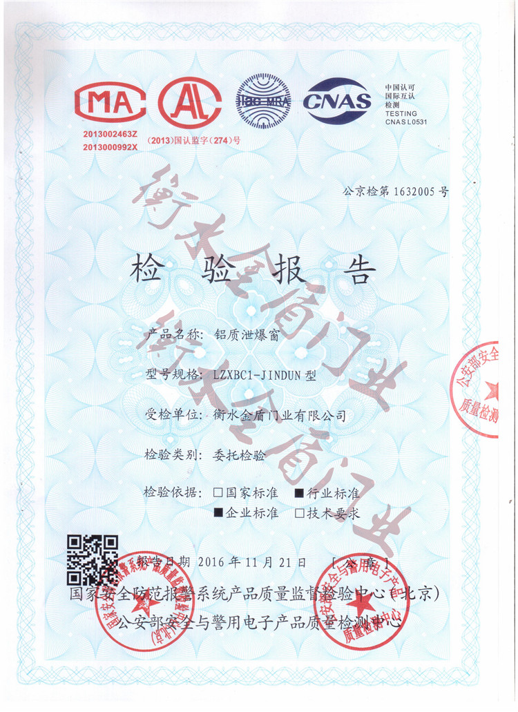 东安铝质抗爆窗检验报告